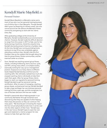 She has previously worked at SHED Fitness in East Memphis as the manager, group fitness instructor, and personal trainer, iLoveKickboxing as a trainer and manager as well as ZenStudio, a multimethod boutique studio, teaching cycling, bounce, and cardio kickboxing.